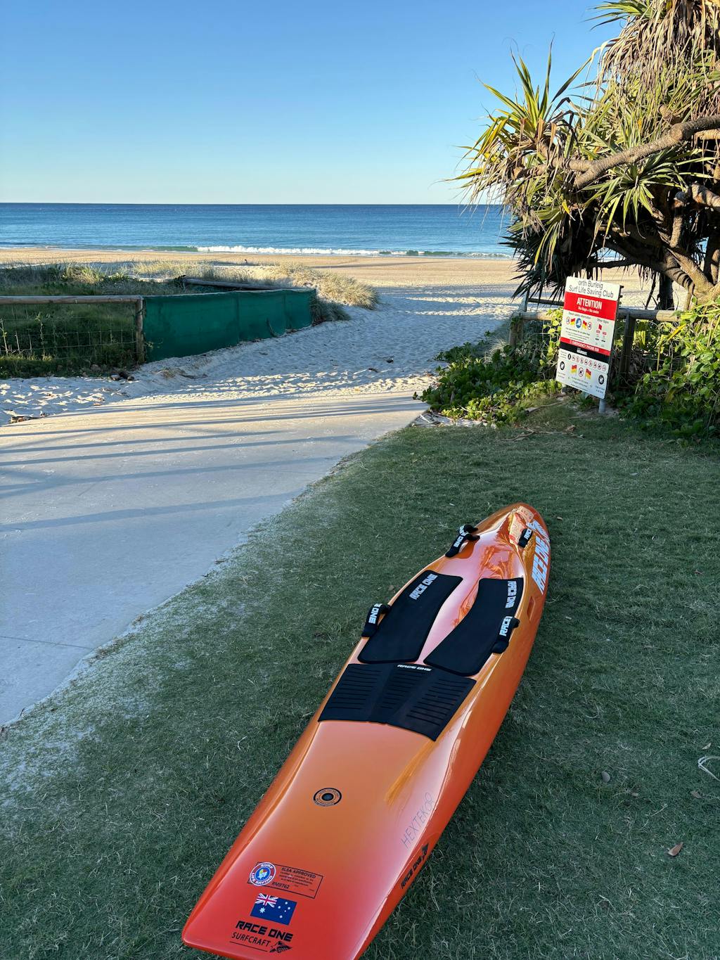 Lovely board but ... If you are competing in your first iron, and aspiring to finish in the middle of the pack, perhaps look at who raced your board board before you. Many Nippers and Masters excited to see Bevys board on the beach in FNQ, not so much this middle aged man :)